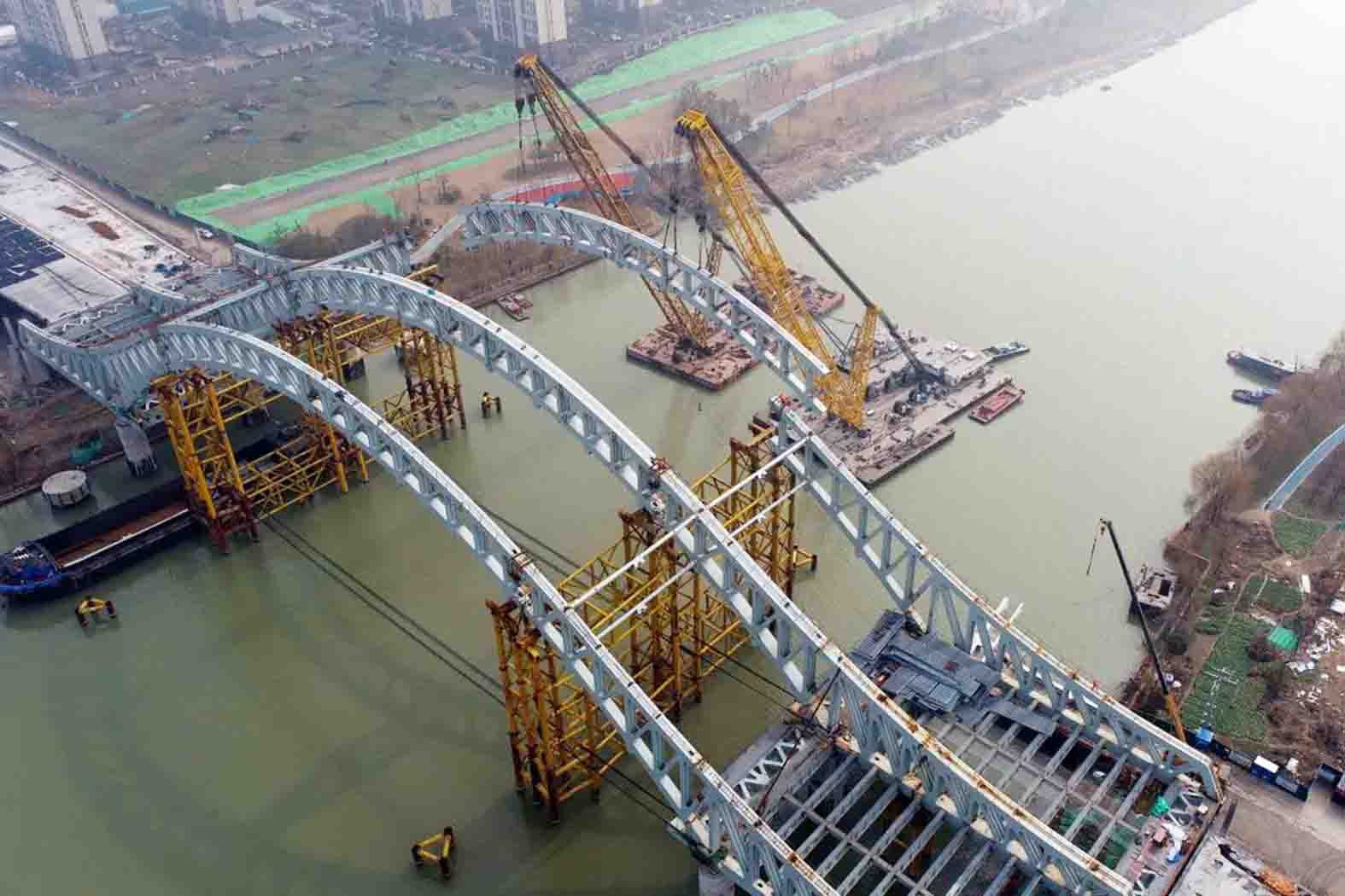 助力二里橋路跨京杭運河大橋主體合龍 河南城建集團在運河上搭新橋